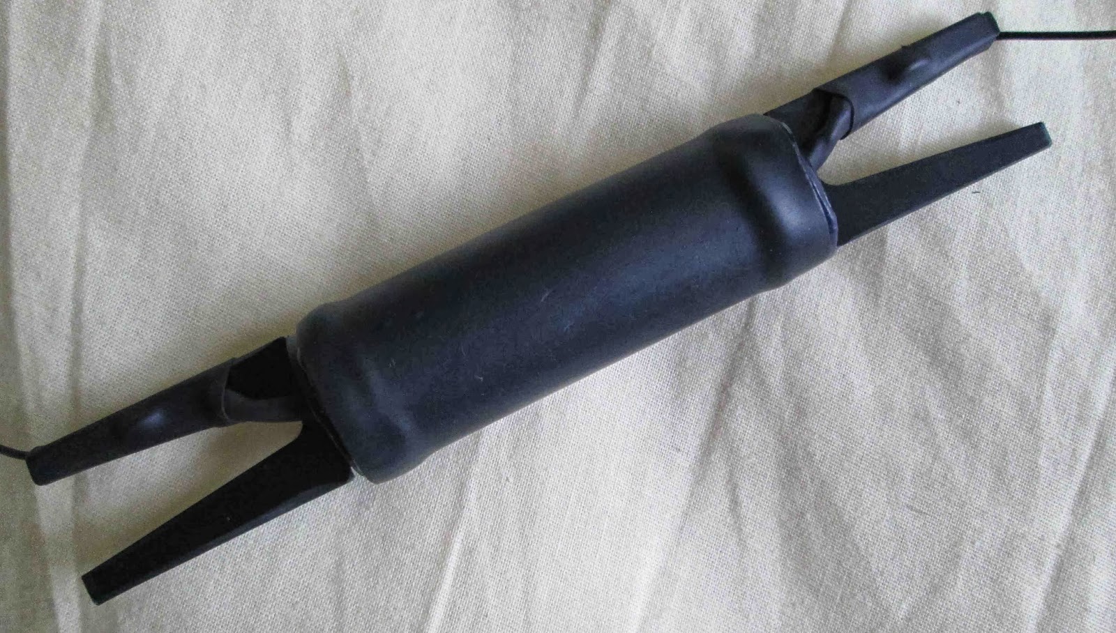 Now the 1st thing that I need to mention, when they say trail friendly; " they mean just that ". This single wire with matchbox design weighs about the same as a large celluar phone. It's made from a very light weight wire & components and fits into my go-case ( Pelican ) with my rig and key. You could carry this in the front pocket of a shirt and not even notice it. The whole assembly wrapped up is about the size of a phone or mpeg player. And next to my galaxy mini, the complete system is small, compact and lite.